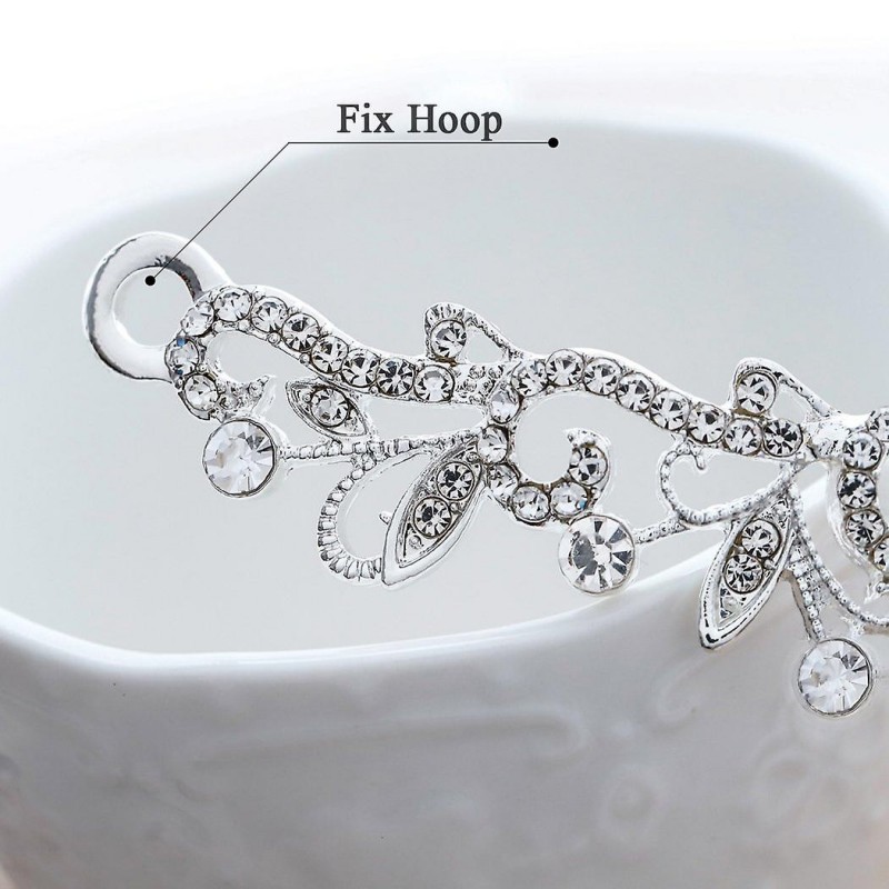Ce superbe diadème en argent convient à une princesse. Il présente de magnifiques tourbillons incrustés de cristaux et de strass scintillants. Il se coordonne parfaitement avec les robes de mariée blanches et blanches diamantées.