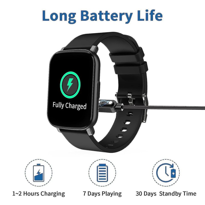 Tracker d'activité physique précisCompteur de pasLa montre intelligente prend en charge 24 sports, tels que la marche, la course, le vélo, la corde à sauter, le badminton, le football, le basket-ball, la natation, l'alpinisme et le baseball. Enregistrez avec précision les activités tout au long de la journée, telles que les pas, la distance, les calories brûlées, la distance parcourue, les minutes d'activité. Restez actif toute la journéeMontre à écran tactile HD de 33 g et cadran personnaliséLe poids de la montre est de 33 g, moitié plus léger que les montres intelligentes ordinaires, vous permettant de faire de l'exercice librement sans fardeauconvient aux hommes et aux femmes. La montre intelligente peut sélectionner le cadran à partir de l'application GloryFit ou des paramètres d'écran DIY, et prendre des photos de famille, des photos de paysage ou des images existantes comme cadran.Moniteur de fréquence cardiaque 24h/24 et 7j/7, moniteur de pression artérielle, d'oxygène sanguin et de sommeilLes montres intelligentes peuvent surveiller les quatre indicateurs de santé les plus critiques du corps et les lire directement sur la montre en temps réel pour vous aider à mieux comprendre votre état de santé et à développer un mode de vie plus sain. Ces données sont fournies à titre indicatif uniquement et ne peuvent pas représenter les appareils médicaux. Montre de fitness étanche IP68 et anti-chute et batterie longue durée. Conception étanche IP68, vous permet de nager dans la piscine sans soucis. Le verre robuste 2,5D a subi un test de chute rigoureux de 5 mètres. La conception de grande capacité et de faible puissance offre une durée de vie de la batterie plus longue. Le câble de charge magnétique rend la charge plus facile et plus pratique, et il peut être complètement chargé en 1,5 heure. Prend en charge 7 jours d'utilisation normale et 30 jours de veille. Montres intelligentes pour iPhone et téléphone Android Cette montre est compatible avec la plupart des smartphones iOS 9.0 et Android 5.0 ou supérieur et Bluetooth 4.0 ou supérieur pour vous avertir des nouveaux appels, SMS, e-mails, calendriers et notifications d'applications. Vous pouvez également lire les messages directement sur la montre, afin de ne manquer aucune information importante lorsqu'il est gênant d'accéder à votre smartphone.