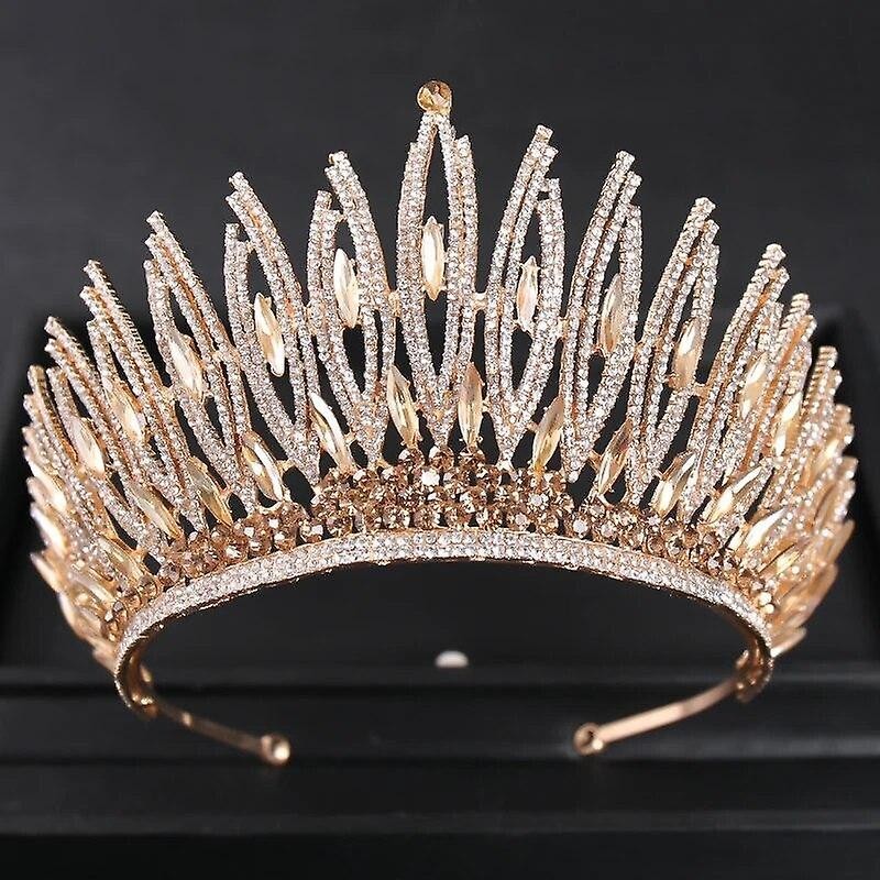 Plaqué : Couronne de concours de beauté en strass noir vintage